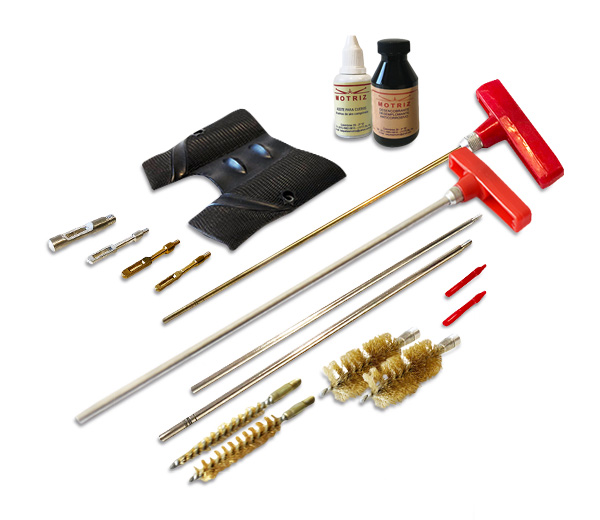Contando con baquetas para todo tipo de armas, cepillos en 6 materiales diferentes, pasatrapos y jags para un abanico importante de calibres, parches de limpieza, aceites desemplomantes-desencobrantes y anticorrosivos y otros productos específicos para armas de aire comprimido y co2.